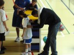 E1 avait déjà joué quelques fois au mini-basket à l’école mais je mentirais en disant que ce sport est sa passion. Quoiqu’il en soit, E1 a souhaité participer à ce camp – ce bel état d’esprit a fait très plaisir à ses parents – et elle a passé une très bonne semaine à Blonay à pratiquer le basket mais aussi d’autres activités telles que le yoga (pour la concentration), la danse (pour la coordination) et du foot (pour le plaisir). Cette semaine était animée par des coaches professionnels du basket et M. Thabo était souvent présent.