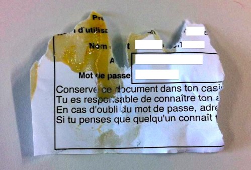 Chaque utilisateur reçoit ses identifiants sur une feuille de papier à conserver. Ça prend du temps pour que le mot de passe soit connu par chaque utilisateur.