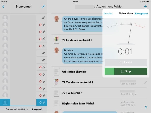 Commentaires audio dans Showbie