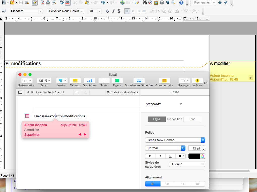 Suivi de modifications Word, Pages et Open Office