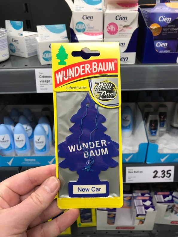 Dans les années 70 et 80 du siècle dernier, bon nombre de conducteurs avaient un arbre magique suspendu au rétroviseur central de leur automobile. A l’époque, si je me m’abuse, il n’existait que le modèle original de couleur verte. Pas de senteurs telle que la vanille ou, ici, la voiture neuve!