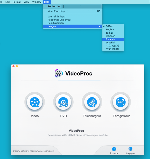 Changement de langue dans une app (Mac)