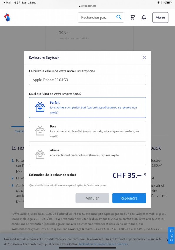 Combien me reprend-on un iPhone SE 64 GO en parfait état?
