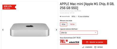 Comme je l’ai déjà écrit quelques fois le Mac mini M1 est une excellente machine – à ce que j’en ai lu – et même si j’ai renoncé à en acheter un exemplaire, je me tiens au courant des promotions.