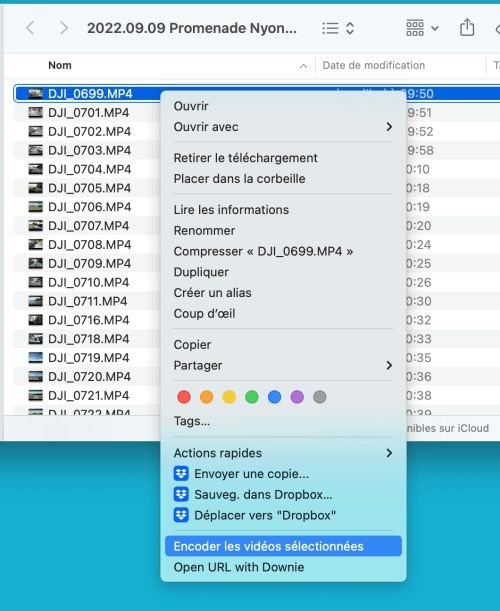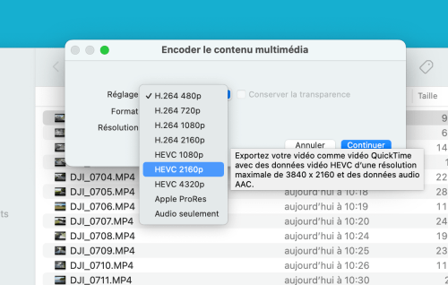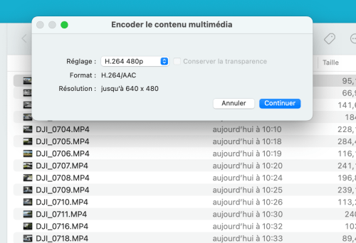 Ré-encodage vidéo dans le Finder