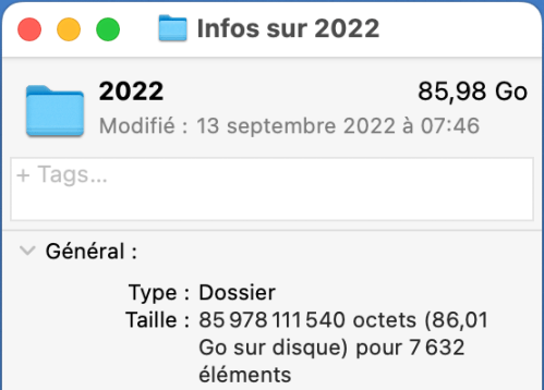 Au total, ces photographies représentent 1,67 To. Je ne pratique par le format RAW, tout est en .jpg ou .heic.