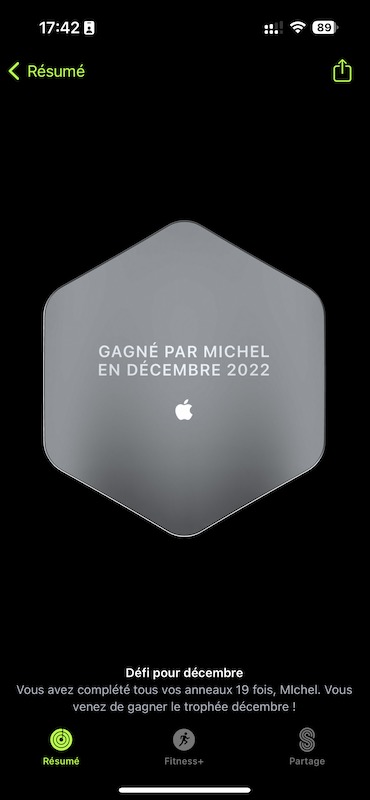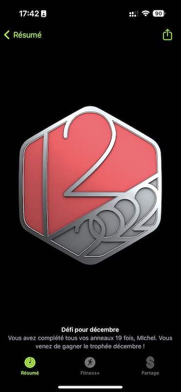 Trophée Apple Watch décembre 2022