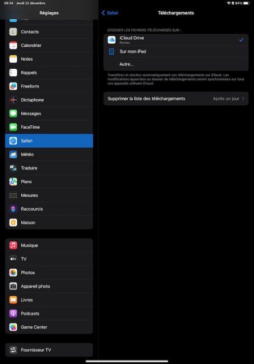 Il s’agit donc, sur l’appareil iOS, de changer la destination des fichiers téléchargés: