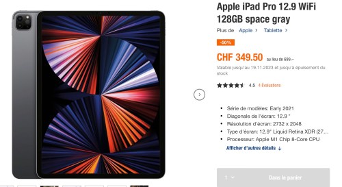 Si on effectue une recherche pour savoir où est disponible cet iPad, on obtient ceci: