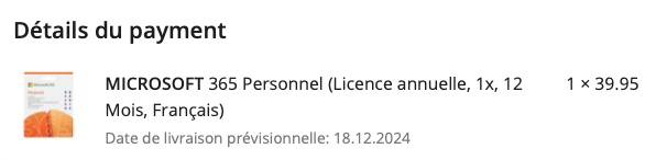 L’autre jour, j’ai lu que la Confédération a payé 150 millions de francs pour des licences informatique dont une bonne partie à Microsoft. Quant à moi, même si ça me tue de donner un seul centime à cette entreprise, j’ai dû payer 39 francs et 95 centimes pour prolonger d’une année ma licence d’utilisation d’Office 365, euh Microsoft 365, euh, comment ça s’appelle aujourd’hui.