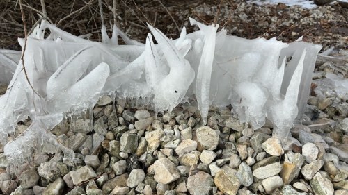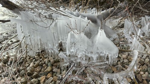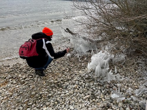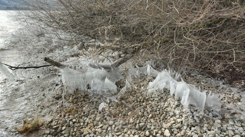 L’autre jour, A. (mon épouse) et moi avons vu de belles formations de glace au bord d’un lac du Jura vaudois (le lac de Joux).