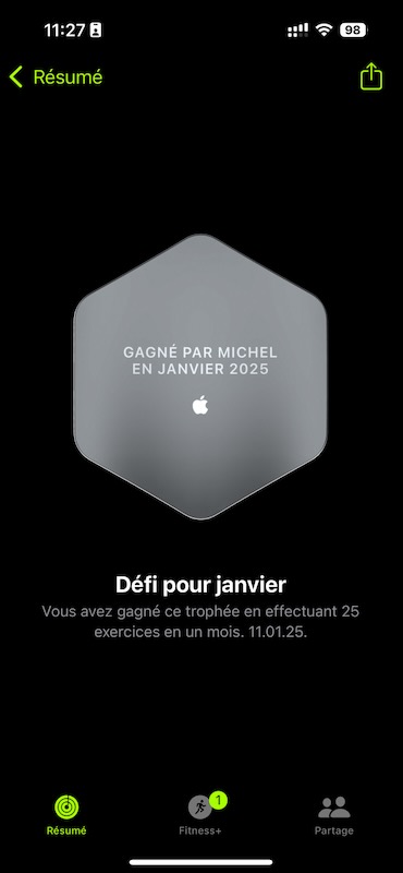 Pas trop difficile à obtenir: il a fallu faire 25 exercices d’au moins 5 minutes chacun. On pouvait en faire plus qu’un par jour (la preuve par le fait que j’ai obtenu ce trophée samedi 11 janvier).
