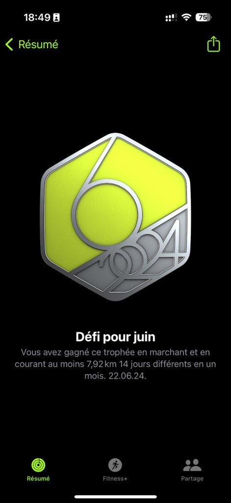 Ce trophée a été plus difficile à obtenir – il a fallu faire plus d’activité physique – que la plupart des autres trophées mensuels.