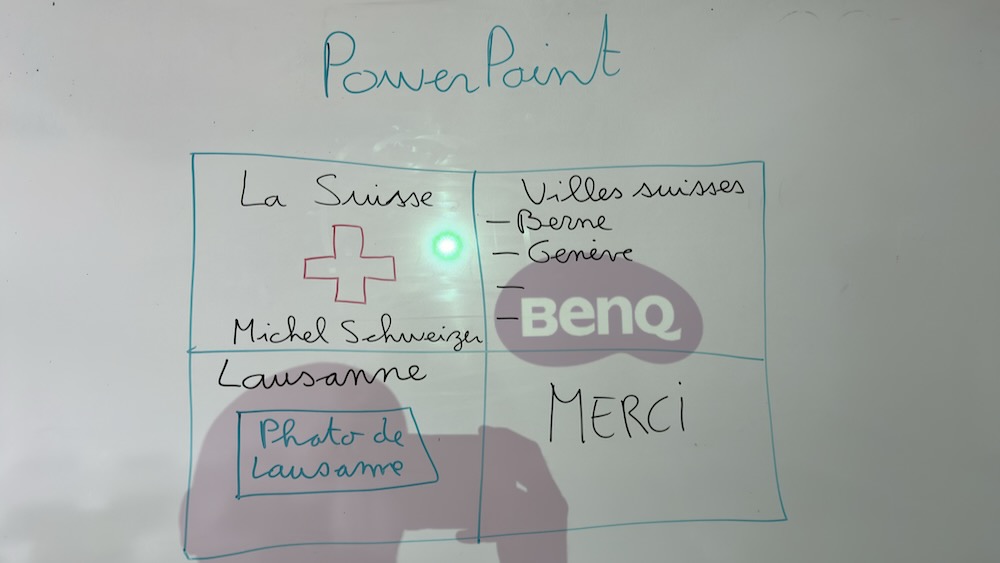 L’autre jour, j’avais à « prototyper » un exemple de présentation assistée par ordinateur. Je me suis saisi de mes nouveaux stylos pour flip chart / tableau blanc et voici ce que ça a donné.