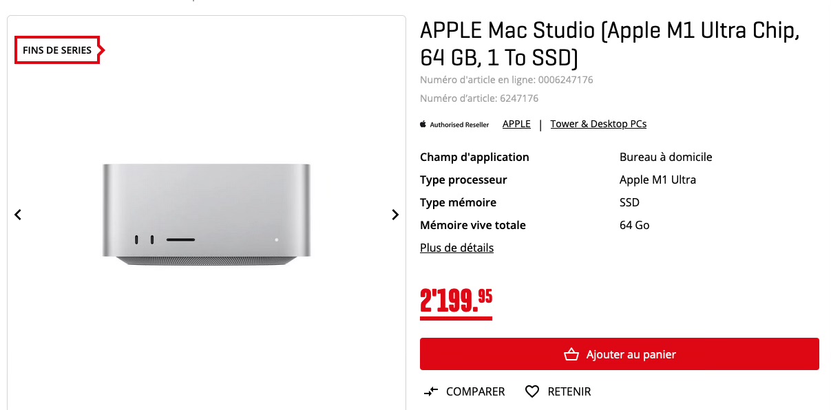Le Mac Studio M1 Ultra est encore disponible chez quelques revendeurs. Il coûte cher mais c’est une machine très puissante.
