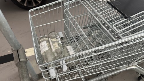 Trois bouteilles du même vin médiocrement abandonnées dans un chariot!