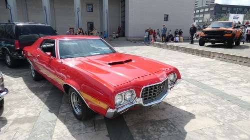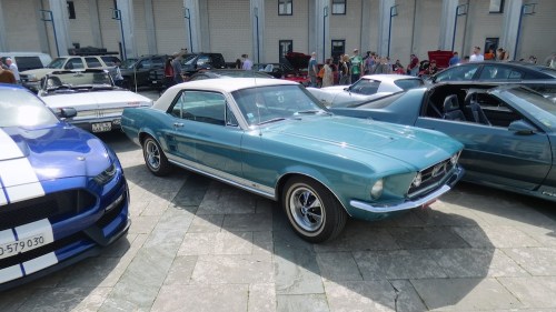 L’autre jour, en voyant une banderole déployée sur un pont de ma bonne ville, j’ai appris qu’une nouvelle édition d’une rencontre d’amateurs de voitures et motocycles des USA allait se tenir un samedi. Le jour-dit, A. (mon épouse) et moi sommes allés voir.