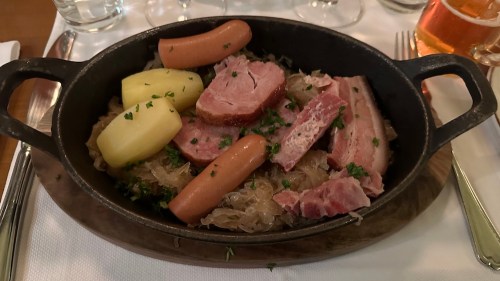 Trois de nous se sont laissés tenter par la choucroute. Nous n’avons pas été déçus: